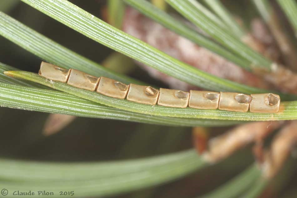 Elle pond d’ailleurs ses œufs en faisant un joli alignement sur une aiguille.