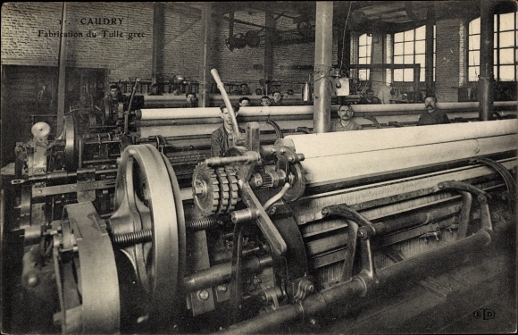 Au cours du XIXe siècle Caudry et sa région vont se consacrer à la fabrication du tulle puis à la dentelle mécanique à base de coton pour compenser la crise de l’industrie du lin. Caudry n’a pas hésité à s’approprier les techniques inventées par les anglais et à fabriquer ses propres machines textiles.