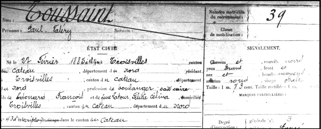 Le livret militaire de Paul Toussaint confirme ces rares souvenirs.