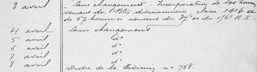 Le Journal du 94e régiment est totalement silencieux sur cet épisode de début avril 1916.