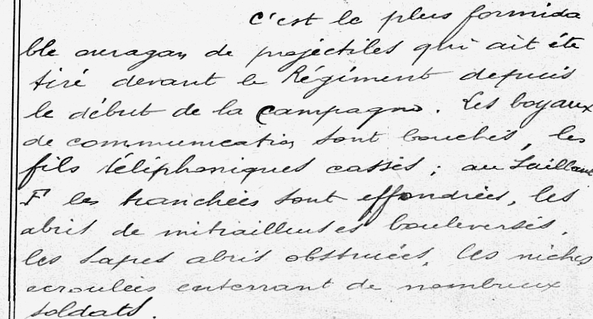 « Cette lutte en Argonne est terrifiante, parce qu’elle ne cesse jamais ni de jour ni de nuit. Le calme n’existe jamais … Pour se faire une idée de ce qu’est cette lutte de pétards et de bombes, je dirai que si, au début, je fabriquais à l’Armée 2500 pétards par jour, je suis obligé aujourd’hui d’en fabriquer 25000, et ce nombre sera encore insuffisant, tous les Corps en réclamant.« A ce jeu, les troupes s’usent vite. J’ai dit déjà que, depuis le 8 janvier, j’avais perdu en Argonne 1200 officiers et 82000 hommes, presque la moitié de l’effectif de l’Armée »