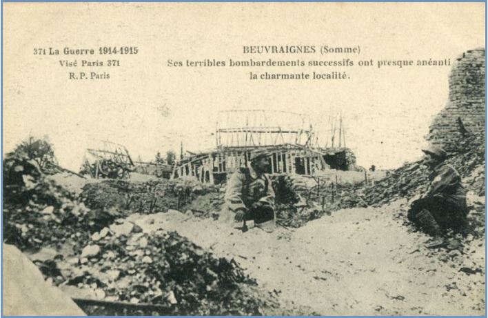 Placé en réserve jusqu’au 1ier octobre, le 294e régiment embarque à Compiègne, repart vers le nord direction Amiens, et débarque à Montdidier. Le repli allemand s’est arrêté et l’ennemi s’est solidement organisé pour contrôler la voie ferrée Roye–Compiègne à la hauteur du passage à niveau de Beuvraignes, c’est là que le régiment va se heurter aux avants postes ennemis.