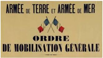 Le 31 juillet, l’empire allemand se déclare en état de guerre et le 1ier Août, le gouvernement français lance l’ordre de mobilisation générale qui est affiché dans toutes les mairies de France. Les cloches de l’église comme le tambour du garde champêtre diffusent l’information dans tout le village.
