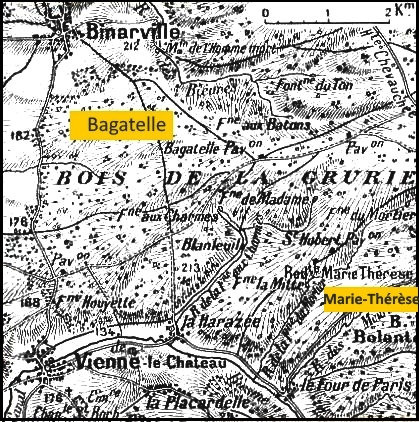 Février-Juillet 1915, Bataille de l’Argonne: le saillant de Bagatelle, Marie Thérèse et Paul Toussaint reçoit la Croix de Guerre,il est promu caporal puis sergent.