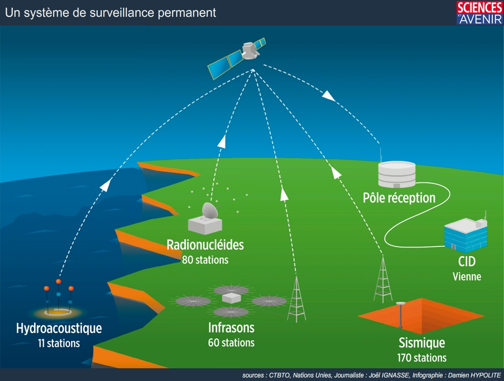 Cette organisation, chargée de vérifier le respect du traité, disposera d’un réseau planétaire de détection des essais éventuels. Le réseau devra être en mesure de détecter et de localiser tout type d’explosion nucléaire d’une puissance supérieure à 1 kilotonne (pour mémoire : Hiroshima = 15kT).