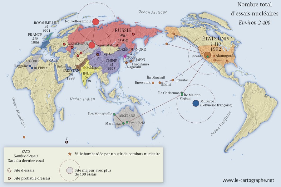 L’année 1958 est marquée en France par le retour du général De Gaulle au pouvoir qui, soucieux de retrouver sa liberté d’action, retirera la France des négociations de Genève à partir de Septembre 1958. Notre pays fera ses premiers essais nucléaires dans l’atmosphère dès 1960 en Algérie et devra donc faire face à une opinion publique mondiale très hostile.