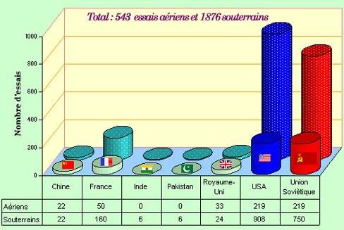 A partir de 1949, les États-Unis, l’U.R.S.S. et le Royaume Uni, seules puissances nucléaires, mènent la course aux armements et effectuent des essais de bombes nucléaires essentiellement aériens jusqu’au jour où, en mars 1954, l’équipage d’un navire japonais, le Fukuryu Maru, est contaminé par les retombées radioactives d’un essai américain dans le Pacifique. L’opinion publique mondiale commence à s’inquiéter de l’impact des retombées radioactives des explosions sur la pollution de l’atmosphère et prend conscience que la multiplication des expériences pouvait constituer un danger réel pour la population. D’ailleurs, avec le recul, on peut vérifier combien il était urgent à cette époque d’intervenir (voir graphique). Le monde politique finit par admettre que la solution doit être recherchée dans le désarmement contrôlé et, après de multiples rencontres entre chefs d’états, une conférence d’experts est convoquée à Genève en juillet 1958.