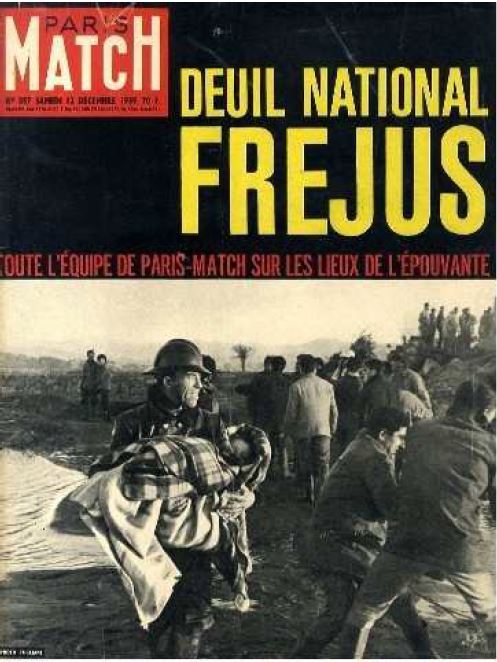 | Le 2 Décembre 1959 vers 21h15, le barrage de Malpasset, situé à une douzaine de kilomètres de Fréjus, céda et 50 millions de m3 d’eau déferlèrent sur la vallée, emportant tout jusqu’à la mer. 423 personnes perdirent la vie. Des hommes, des femmes et 135 enfants. Il s’agit de la plus importante catastrophe civile que la France ait connue. |