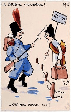 La « grippe espagnole », dernière grande pandémie en 1918 :