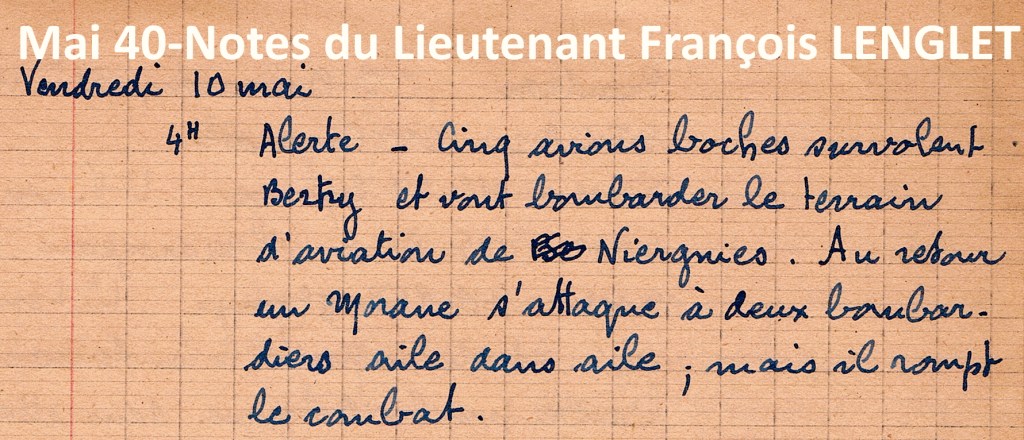 Il restera à explorer les écrits de mon père François Lenglet pendant la seconde guerre mondiale : officier d’artillerie, il fut rappelé par l’armée française dès mai 1940. Il a écrit au jour le jour ses errances pendant la drôle de guerre puis, fait prisonnier en septembre 1940, il passa cinq ans dans les camps de prisonniers allemands, les Oflags réservés aux officiers, en particulier à Nuremberg, et nous a laissé ses carnets de notes.