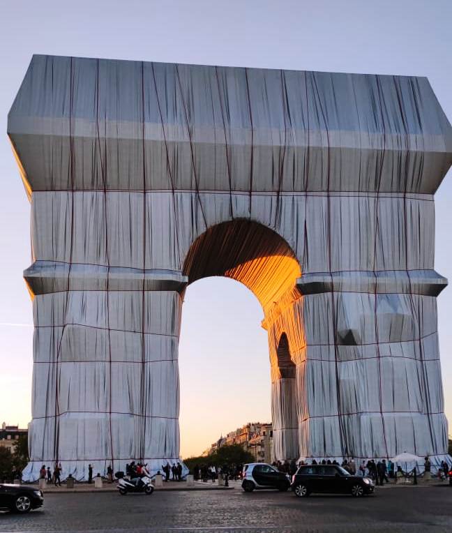 Finalement, ce n’est qu’après la mort de Christo survenue en mai 2020, que sera réalisé l’empaquetage de l’Arc de Triomphe en septembre et octobre 2021. Christo ne verra jamais le plus national des monuments français, frémir sous son voile bleu argenté, ceinturé de cordes écarlates qu’il décrivait dès 1961 par ces mots : « Ce sera comme un objet vivant qui va s’animer dans le vent et refléter la lumière. Les plis vont bouger, la surface du monument va devenir sensuelle. Les gens auront envie de toucher l’Arc de triomphe. »