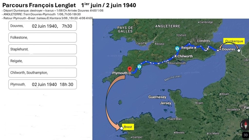 Le premier juin 1940, le lieutenant François Lenglet et son détachement embarquent sur le destroyer anglais « Icarus » qui quitte le port de Dunkerque pour échapper aux troupes allemandes et se dirige vers le port anglais de Douvres.