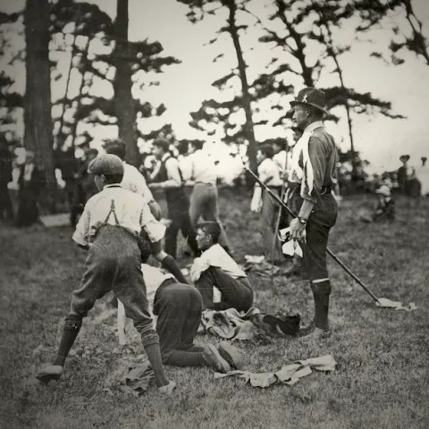 Mais c’est au camp que la vie scoute reçoit son plein épanouissement ; le camp est la synthèse de toutes les activités – de toutes les formes de l’éducation scoute. Ici encore, nous ne pouvons mieux faire que de reproduire le programme d’une journée au camp.