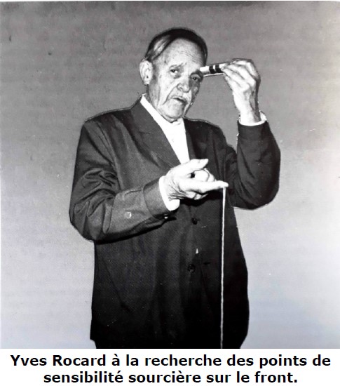Y Rocard émettra l’hypothèse que si un magnétiseur est capable de soigner certaines maladies par simple imposition des mains, ces dernières doivent contenir de la magnétite. Testant la capacité de sourcier de plusieurs magnétiseurs, il fera l’expérience suivante : il se positionne près du magnétiseur, tient un pendule de la main droite, immobile, il demande au magnétiseur de placer trois doigts sur son arcade sourcilière gauche, le pendule tenu par Y Rocard se met immédiatement à tourner. Le magnétiseur avec ses doigts a donc bien créé une anomalie magnétique